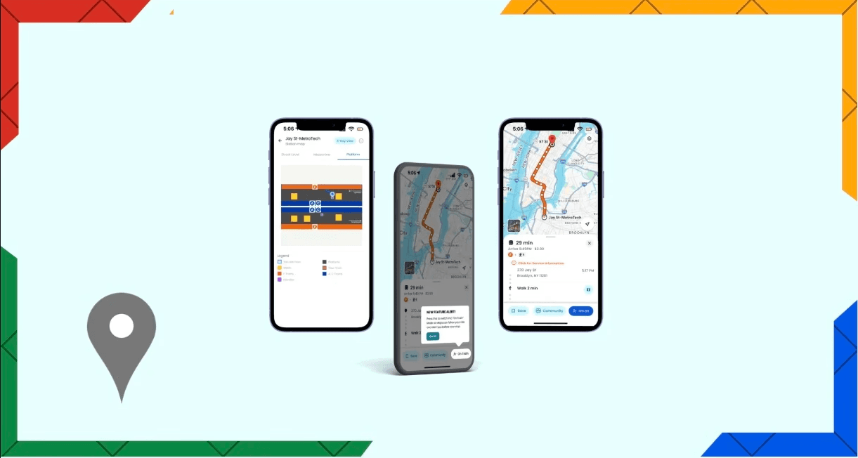 Improved transit navigation in Google Maps through real-time train tracking, intra-station wayfinding, and a rider community chat, creating a more transparent and informed travel experience